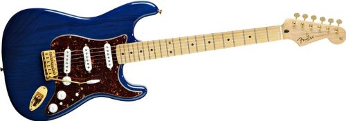 The powerful Deluxe Players Strat guitar is set apart from the pack by features including an ash body, lightly tinted modern neck with a 12"-radius maple or rosewood fingerboard, Noiseless pickups, standard five-way pickup switch paired with push/push mini-switch offering an even greater variety of pickup combinations, brown shell pickguard and gold-plated vintage hardware.