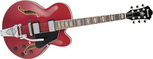 Pushing traditional concepts one step further, the Ibanez AFS has the same shape and full-hollow body of the AF. For increased comfort and more midrange punch, the body depth is one inch thinner. An Ibanez Vintage Vibrato is also mounted on the body with roller saddles, eliminating the tuning problems of traditional systems.