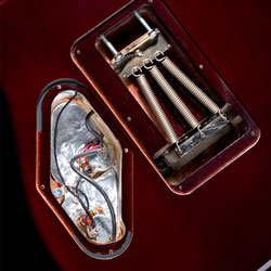 EVH Wolfgang: Every aspect and component of this guitar has been examined and upgraded to the highest standards possible: stainless steel frets, double-potted custom wound pickups, five-piece binding on the matching body and headstock, custom-made signature tuning machines and Floyd Rose bridge, new low-friction pots, and the list keeps going we left no stone unturned. Edward Van HalenFrom Eddie Van Halen comes an all-new guitarthe Wolfgangrepresenting over 35 years of cumulative EVH experience and expertise in guitar design. The process undertaken to develop the Wolfgang took over two years of intense trial-and-error research. The formidable task yielded a series of prototypes that endured a full year of brutal in-concert road testing by Eddie on Van Halens triumphant 2007-2008 world tour. The result is a bulletproof and beautiful tonal giant of a guitar that takes whatever you can dish out and then asks for more.As the VH tour kicked off in the fall 2007, Eddie pushed every aspect of the Wolfgangs performance capabilities to the absolute limit, playing various Wolfgang prototypes every night on virtually every song. As the tour roared along, Eddie changed and adjusted components and specs until he was satisfied with the Wolfgangs sound, feel and looks. To prove that it was battle-worthy and could survive the road, performance data was collected from every gig for months and months to establish and confirm consistency and durability.This is what makes the Wolfgang the culmination of Eddie Van Halens endless pursuit of outstanding tone, durability and consistency; the EVH Wolfgang guitar is built to his exact specs and has every single feature of the Wolfgang guitars he himself plays onstage and in the studio. Its exactly what he uses.Everything that Ive built, destroyed, stumbled onto, learned and experienced is in this guitar, Eddie Van Halen said. Every aspect and component of this guitar has been examined and upgraded to the highest standards possiblestain...