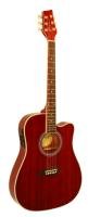 Kona K2 Series Transparent Red Thin Body Electric Acoustic Guitars strike the balance between the low profile electric guitar feel, and the acoustic guitar tone.This guitar is the perfect crossover instrument for the electric guitarists looking for a true, balanced acoustic sound without large body adjustment, or the smaller player that is uncomfortable with the deep dreadnought stretch.